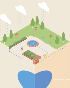 Bluebloqs es una solución basada en la naturaleza que permite la gestión descentralizada del agua en las zonas urbanas, evitando la inundación de las calles y garantizando la disponibilidad de agua dulce. De hecho, al recoger, tratar y almacenar localmente las aguas pluviales a través de un sistema circular integrado, Bluebloqs permite restablecer el ciclo natural del agua. El sistema puede aplicarse a nivel de edificios, propiedades o vecindarios, añadiendo vegetación a la infraestructura existente o realizando proyectos de rehabilitación urbana. Prototipos funcionales del sistema Bluebloqs ha sido implantados en varias ciudades dentro de las cuales están Rotterdam y La Haya (Países Bajos), Aartselaar (Bélgica), Madrid (España). En el proyecto, liderado por la Universidad Tecnológica de Delft, están involucrados la Universidad Politécnica de Madrid, Aquafin y Field Factors. En Madrid el prototipo funcional se ha instalado en el Parque de la Torre Caleido, gracias al acuerdo entre el Ayuntamiento, el Consorcio del proyecto y la Propiedad del “Espacio Caleido”.